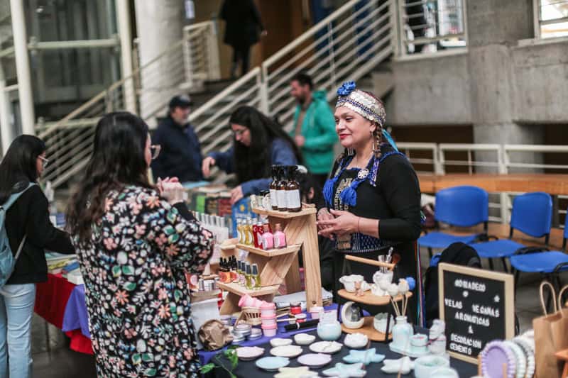 Entre las y los expositores estuvo Carola Hidalgo Donoso, estudiante FEN y cofundadora, junto a su madre, de Creaciones Nahuen: “Como estamos recién empezando, esta instancia nos sirve para presentarnos y mostrarnos, conocer lo que la gente quiere y saber hacia dónde ir”.